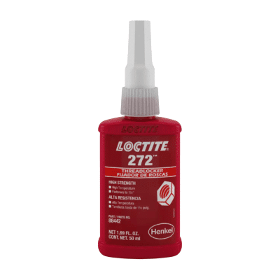 El Loctite 272 de 50 ml es un fijador de roscas que asegura tornillos y pernos en equipos y motores.